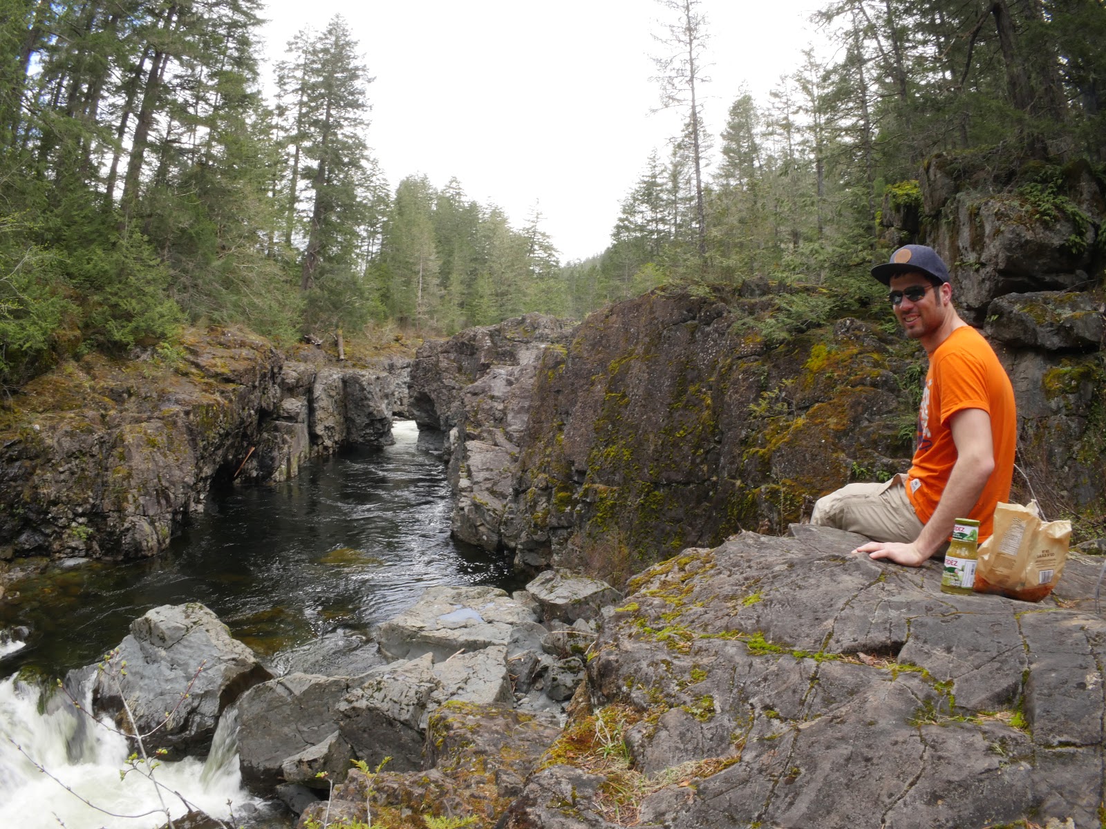 We headed down to Hatley Castle, which is in the grounds of a university. Unfortunately the Castle was closed because there were lectures being held in it, so we could only walk around the outside. We didn't feel like paying $12 each to go in the gardens, so kept driving to Sooke's Potholes. It was kind of a small gorge with a series of waterfalls and rapids, and you walked along beside it for a while.